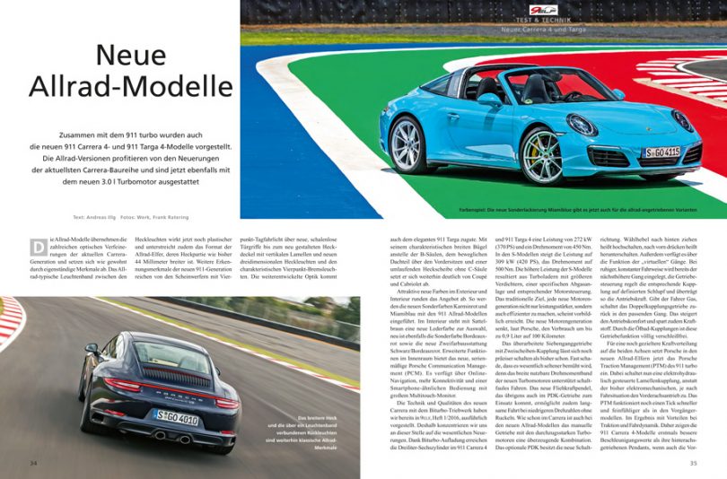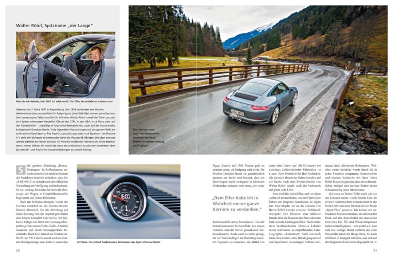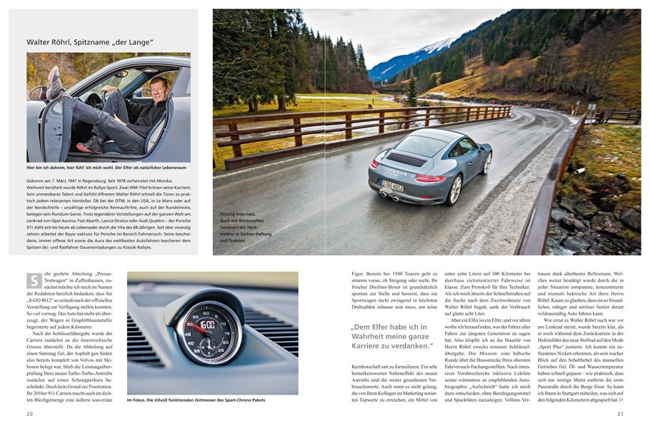 9ELF – Was Porsche Fahrer bewegtGanz ausführlich befassen wir uns mit den brandneuen Porsche 911 Turbo und den Allrad-Modellen des Typ 991 II bei unserem Test auf der Rennstrecke im südafrikanischen Kyalami. Außerdem schauen wir dem besten Autofahrer aller Zeiten, Walter Röhrl, auf Hände und Füße bei dessen rasanter erster Ausfahrt mit dem neuen Carrera 911 und hören, was er von ihm hält. Komplett neu kommt auch der Vierzylinder-Boxster 718 – wir zeigen erste Bilder und Fakten.Mit dem TAG Turbo-Motor stellte Porsche dreimal den Formel 1-Weltmeister. Chefkonstrukteur Hans Mezger erzählt die Insider-Story. Klassisch wird’s mit dem Carrera 2.7 RS, mit einem modernen Elfer im Stil der 60er Jahre, mit einem Speedster und mit einem brachialen 356-Eigenbau. Die Themen von 9ELF 2/2016: Titel