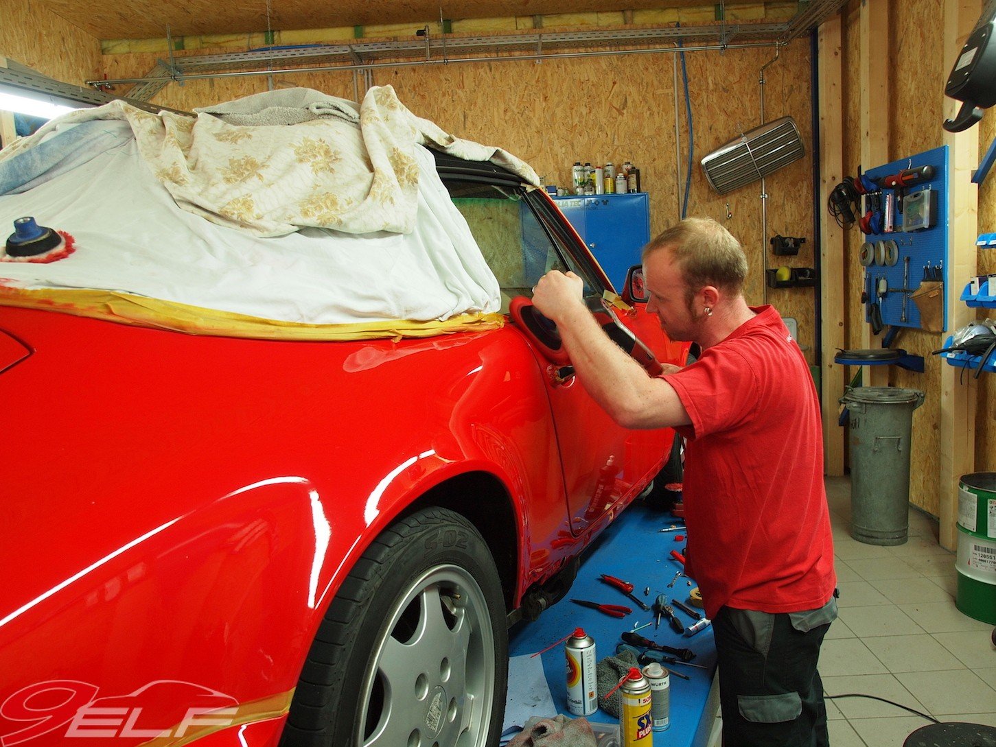 Mein Porsche 964 Cabrio aus dem Jahr 1991 besitzt noch seine Erstlackierung in „Indischrot“. Dem Alter entsprechend gab sich die Außenhaut inzwischen verwittert, etwas stumpf und die Farbe war nicht mehr so kräftig rot wie ein Neulack. Das sollte sich ändern.