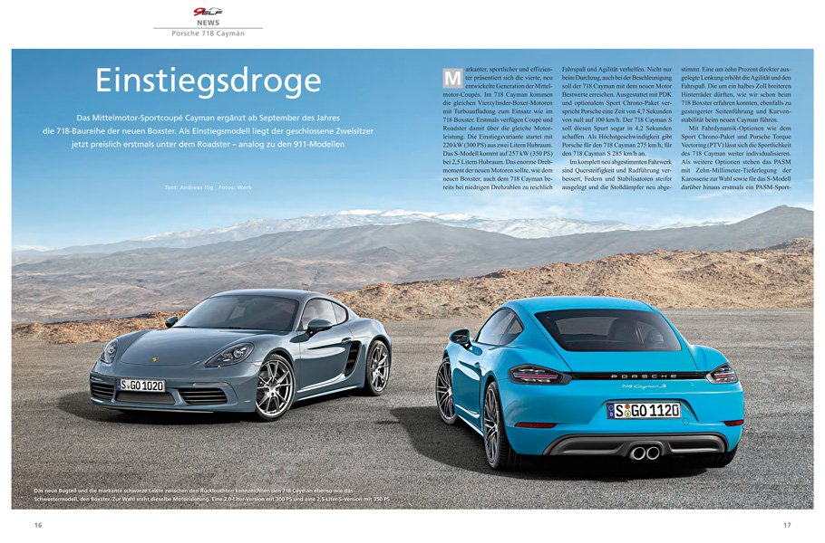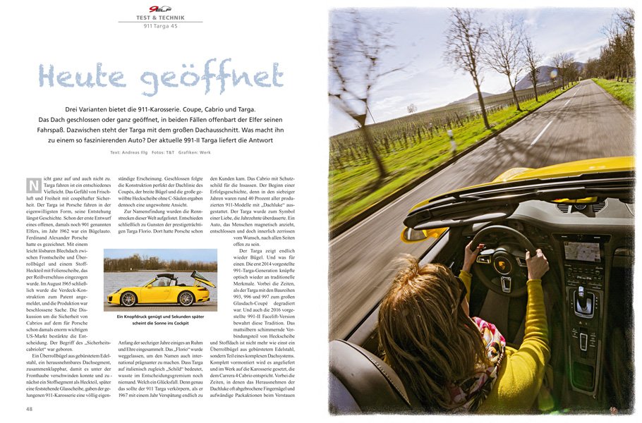 Porsche-Sportwagen waren seit jeher für den Rennsport als auch für sportliche Fahrer gebaut. Und das sind sie auch heute noch. Wir stellen Ihnen den schärfsten aller 911er vor, das aufs Wesentliche reduzierte Sondermodell 911 R mit kernigen 500 PS. Dazu den Formel 2-Rennwagen 718/2 von 1957 mit Vierzylinder-Boxer-Mittelmotor. Vom gleichen Antriebs-Konzept sind auch der neue 718 Boxster in unserem Fahrbericht sowie der brandneue, von uns vorgestellte Cayman. Im Test außerdem der neue 911 Targa 4S. Wir stellen den brachialen Ruf RGT 4.2 mit 525-PS-Saugmotor vor und erinnern uns an den rennsportverrückten Schauspieler Paul Newman und seinen noch immer aktiven 911 S.