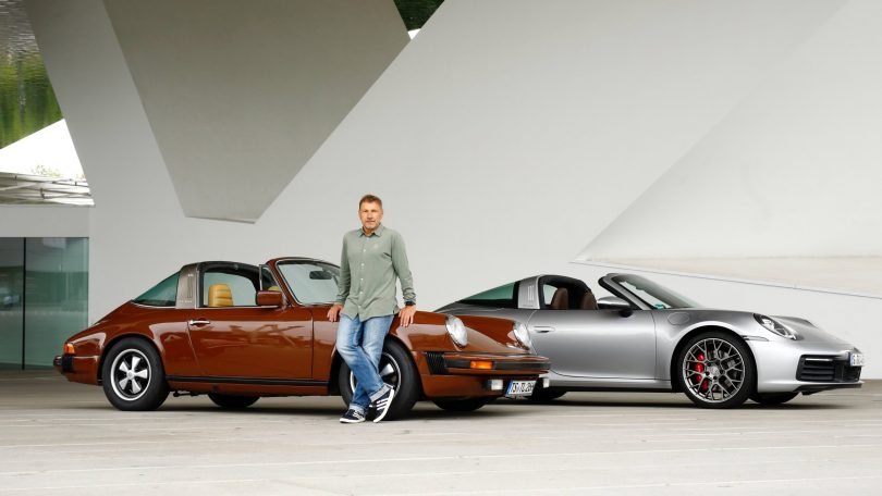 Um öfter in den Genuss des Tatort-Targas zu kommen, fährt Richy Müller privat ein Filmdouble des Wagens – ebenfalls in schokobraun, aber von 1977. Jedoch nur für kürzere Strecken zum Genießen, wie er sagt. Als Vielfahrer greife er bei langen Fahrten auf sein neues 911 Coupé zurück. „Der alte Targa hat noch keine Servolenkung, da muss man noch richtig kurbeln, viel Schalten und spürt unmittelbar die Straße. Das ist harte Arbeit.“ Womit er einen weiteren Unterschied zwischen alt und neu aufgreift: „Die neuen Fahrzeuge bieten einfach mehr Komfort und Sicherheit“, sagt er. Auch die moderne Technik begeistert ihn: „Es ist einfach ein Genuss zu sehen, wie sich das Dach in Sekunden in sich selbst versenkt. Ein erneuter Geniestreich der Ingenieurskunst“, schwärmt der 64-Jährige. Gleichzeitig sei es fantastisch, dass der Überrollbügel – das Targa-Merkmal schlechthin – beim neuen 911 Targa 4 wieder so aussieht wie früher.