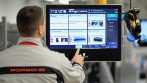 Roberto Hernández, Leiter Planung Werk Zuffenhausen, nennt sie „das Frontmedium für den Werker“. Die eigentliche Intelligenz sitzt im Hintergrund: das Porsche Fertigungs- und Prüfsystem (PFPS). „Das PFPS können Sie sich als Gehirn- und Nervenzentrale der gesamten Fahrzeugmontage vorstellen. Über die elektronische Wagenbegleitkarte werden sämtliche Prozesse der Automatisierung, der Fahrzeugdiagnose und der Ergebnisse von Prüfungen sowohl hinterlegt als auch visualisiert“, erklärt Hernández. „Das brauchen wir, um die Varianz, die wir als einziger Hersteller in dieser Größenordnung in der Montage beherrschen, überhaupt abbilden zu können.“