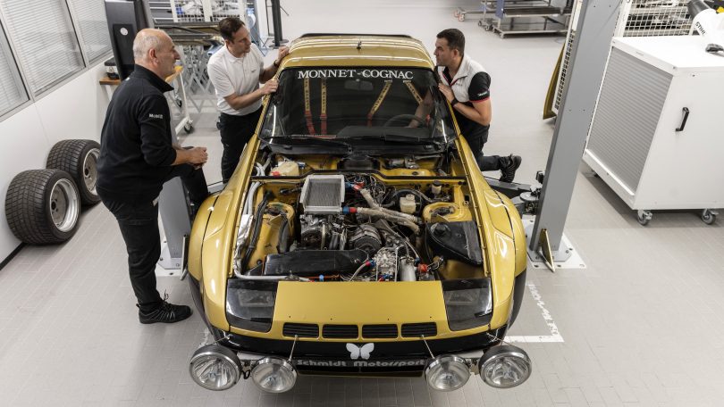 „Das größte Problem der Inbetriebnahme“, sagt Kuno Werner, Leiter der Museumswerkstatt, „war nicht die Technik, sondern die Geheimhaltung.“ Zum 74. Geburtstag sollte der 924 Carrera GTS beim zweifachen Rallye-Weltmeister vor der Tür stehen. „Aber Walter Röhrl kennt hier so viele im Haus, da war es schwer, das Projekt geheim zu halten.“ Aber das Rallye-Revival gelang: Anfang März überraschten das Team des Porsche Museums und Roland Kussmaul Walter Röhrl mit dem einsatzbereiten „Monnet“-Porsche zum Geburtstag.