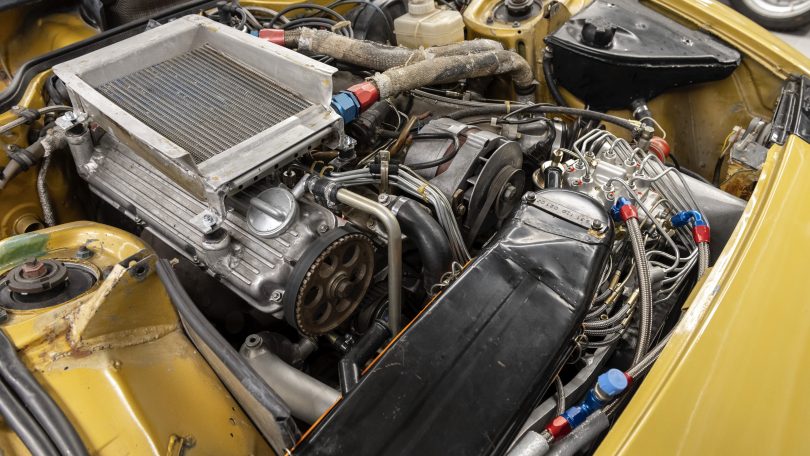 Auch der am 12. Dezember 1980 gebaute 924 Carrera GTS Rallye gehört zu den Vorserienfahrzeugen, ist der fünfte von neun gefertigten Prototypen. Der verbaute Zweiliter-Vierzylinder-Turbomotor ist ebenfalls ein Aggregat aus dem Versuchsstadium; ein Triebwerk ohne Seriennummer, das 1981 eine komplette Rallye-Saison ohne Schäden überstanden hat und den gold-schwarzen 924 auch 2021 zu Höchstleistungen antreibt. 10.371 Kilometer stehen heute auf dem Tacho.