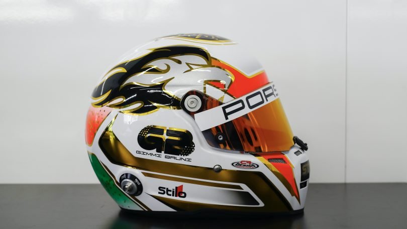 Gianmaria Bruni ist Italiener. Das zeigt er deutlich, immer und überall. Entsprechend ist auch der Helm des ehemaligen Formel-1-Piloten größtenteils in den Farben Grün, Weiß und Rot gehalten. „Das ist seit meinem Wechsel in den GT-Sport erheblich präsenter geworden als es früher der Fall war“, sagt der Wahl-Monegasse. „Für mich war wichtig, diesen Schritt auch mit einer Veränderung des Helmdesigns zu verbinden.“ Im Porsche 911 RSR zeigt Bruni, der 2018 einen fulminanten neuen Rundenrekord für GT-Fahrzeuge im Qualifying zu den 24 Stunden von Le Mans fuhr, jede Menge Biss. „Da passt die Löwenmähne auf meinem Helm perfekt“, erklärt der 39-Jährige.