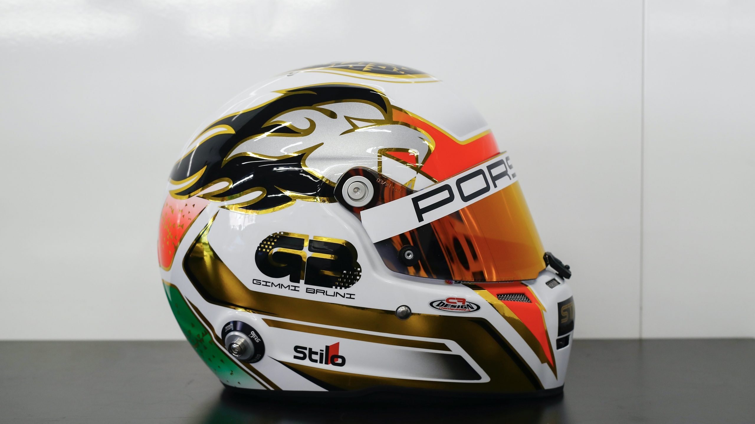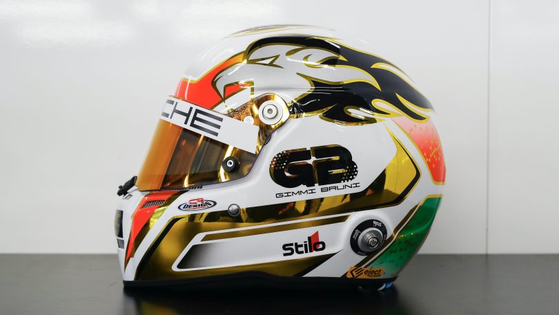 Das, was der erfahrene Italiener als Löwenmähne bezeichnet, erscheint auf den ersten Blick wie die Darstellung von Flammen in Gold und Schwarz. „So soll es sein“, lacht Bruni. „Da kommt der Löwe schnell wie der Blitz daher. Scherz beiseite: Es soll einfach die Dynamik im Motorsport darstellen. Die Löwenmähne im Fahrtwind. Das gefällt mir sehr. Aber ein kleines, anderes Detail ist mir noch wichtiger“, sagt Bruni mit einem Leuchten in den Augen. „Ganz oben auf dem Helm ist ein kleiner Stern. Der steht für meine geliebte Tochter. Sie heißt Stella – und so trage ich diesen ganz besonders hellen Stern im Leben immer bei mir.“