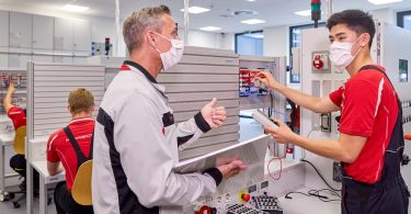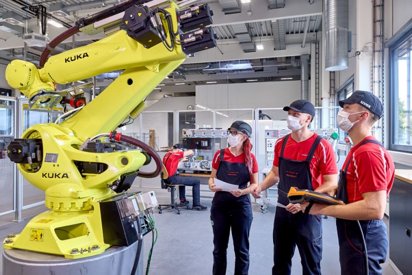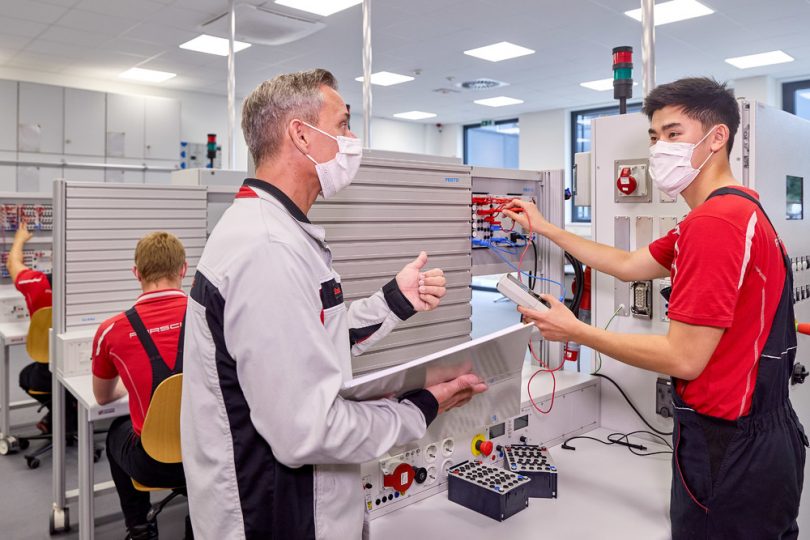 Die Berufsausbildung ist mit dem Leipziger Porsche-Werk mitgewachsen: Als 2002 der erste Porsche Cayenne vom Band lief, gab es fünf Auszubildende am Standort, heute sind es mehr als 120. Um die Ausbildung an die sich stetig verändernde Automobilbranche anzupassen, wurde das 2017 eröffnete Ausbildungszentrum nun ausgebaut. Dadurch entstehen entscheidende Vorteile: Bisher war die Ausbildungswerkstatt der Industriemechaniker und Mechatroniker in der Montage verortet. Durch die Erweiterung werden jetzt alle Ausbildungsberufe unter einem Dach gebündelt. Dies führt zu kürzeren Wegen, einer schnelleren Kommunikation und ermöglicht die Nutzung von Synergien zwischen den Werkstätten. Lebenslanges Lernen ist der Schlüssel zum Erfolg. Deshalb gibt es auch in der Erweiterung des Ausbildungszentrums Räumlichkeiten für die Qualifizierung und Weiterbildung von Mitarbeitern mit Berufserfahrung. So können beispielsweise Schulungen an Robotern und CNC-Maschinen ausgeweitet werden. Inhalte zu Automatisierungstechnik und Industrie 4.0 sind bereits Bestandteil der Ausbildung. Darüber hinaus rückt auch die Elektromobilität zunehmend in den Fokus: Der Kfz-Mechatroniker für System- und Hochvolttechnik ist dabei der Ausbildungsberuf mit dem größten Elektromobilitätsanteil.