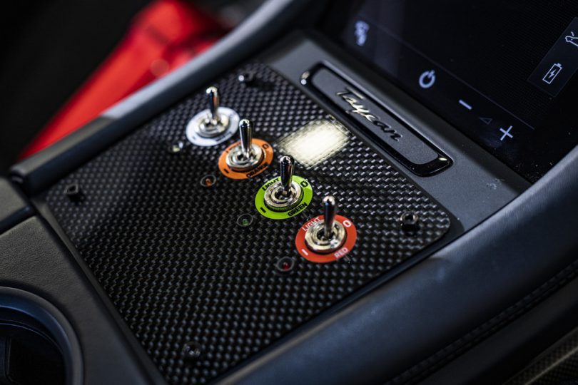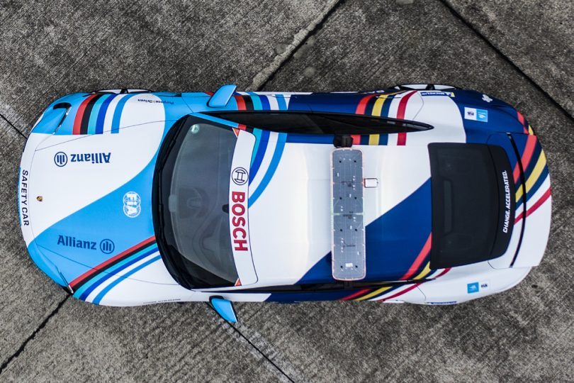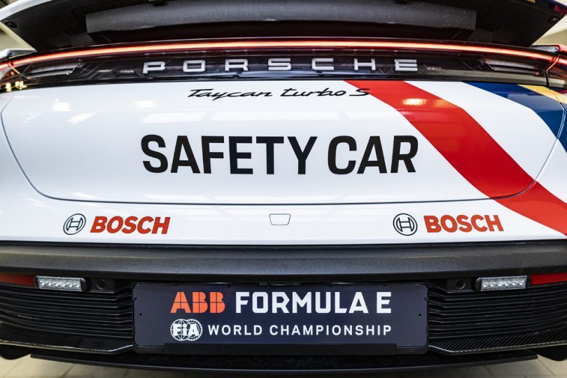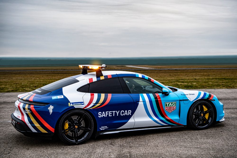 Bei der Umrüstung des Porsche Taycan Turbo S zum Safety Car wurden Überrollbügel sowie Rennschalensitze mit Sechs-Punkt-Gurten montiert, außerdem Kabelbäume für die Safety-Car-Beleuchtung sowie das Marelli-Logger-System angebracht. In die Stoßstangen wurden Blitzlichter integriert. Der neue Arbeitsplatz von Bruno Correia (Portugal), dem langjährigen FIA-Safety-Car-Fahrer der Formel E, wurde zudem mit einem Feuerlöscher sowie einer High-Tech-Kommunikationsanlage ausgestattet. Dadurch wird das Sicherheitsfahrzeug allen Anforderungen für den Einsatz in einer so wettbewerbsintensiven Rennserie wie der ABB FIA Formel-E-Weltmeisterschaft gerecht.