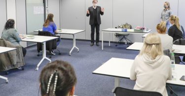 Ihre Tour begann in der Museumswerkstatt, in der für jeden Besucher sichtbar historische Fahrzeuge fachkundig restauriert und repariert werden. Besonders angetan war sie vom babyblauen Modell des Porsche 356. „Wenn ich mich für eines dieser vielen tollen Autos entscheiden müsste, würde ich diesen 356 wählen. Der erinnert mich ein bisschen an ein James-Bond-Auto“, sagte sie mit einem breiten Grinsen. Im Museum stieg sie danach in einen 356 Roadster und wunderte sich über dessen kleines Cockpit: „Ich bin ja wirklich nicht groß, aber hier habe selbst ich Probleme, wieder rauszukommen.“