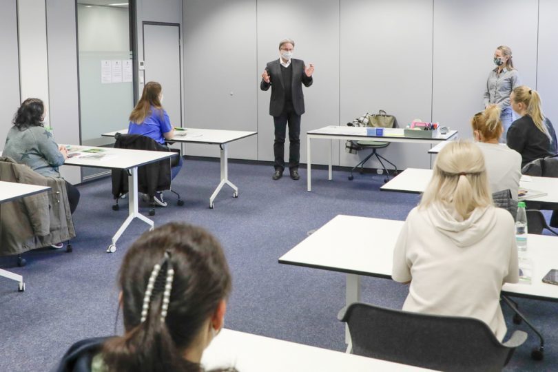 Porsche bietet für Flüchtlinge aus der Ukraine ab sofort Sprachkurse an. Das Angebot richtet sich insbesondere an Mütter. Die Kurse finden im Lerncampus des Sportwagenherstellers in Zuffenhausen statt sowie in verschiedenen Familienzentren in ganz Stuttgart. Die Zentren dienen vor allem Flüchtlingen mit betreuungsbedürftigen Kindern als Anlaufstelle. Partner des Projekts sind das Netzwerk “ukraine engagiert” aus Zivilgesellschaft und Verwaltung, die Stuttgarter Jugendhaus Gesellschaft (stjg) e.V. und die Sprachschule kmp.